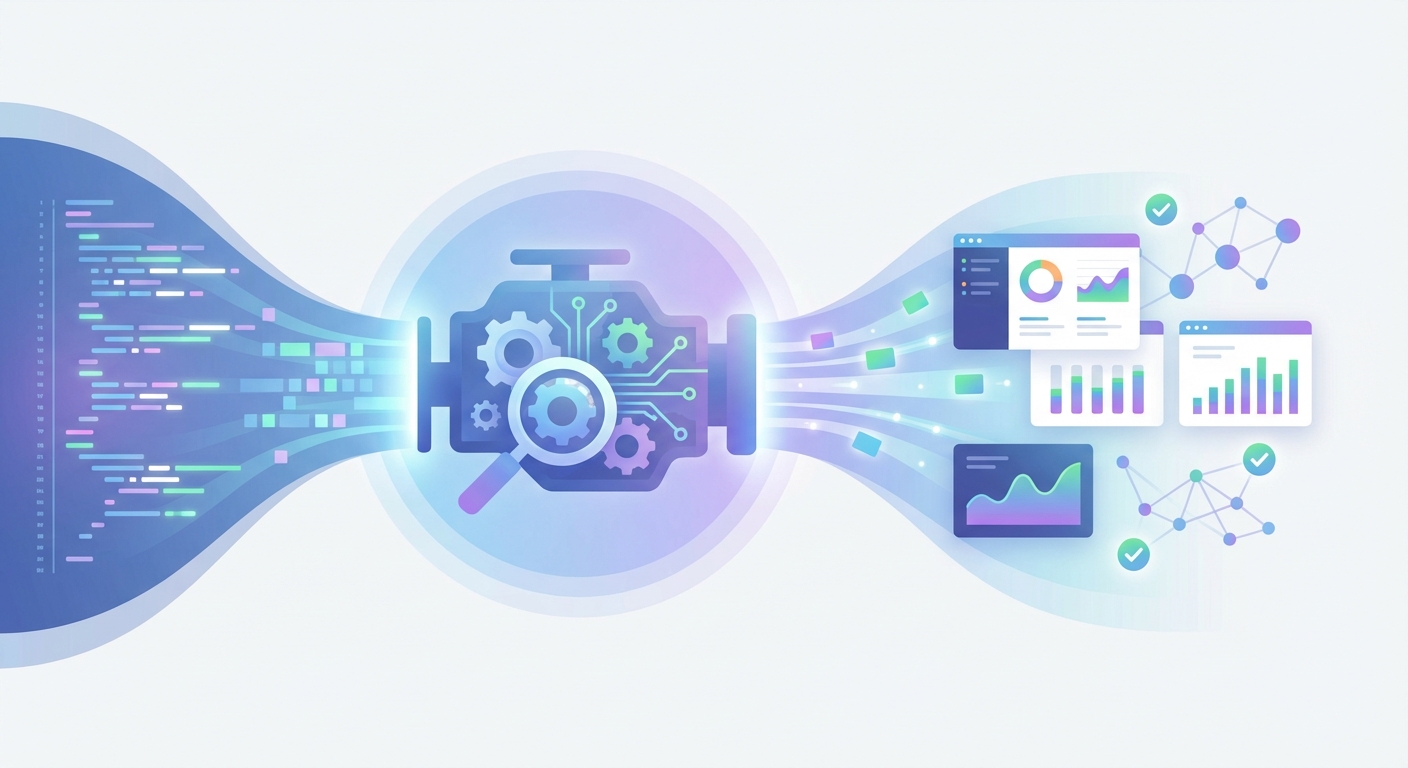 ReverseAGIは、既存のソースコードをAIが解析し、設計書を自動生成するリバースエンジニアリング特化型のAIサービスです。従来、既存システムの設計書整備には、ソースコード解析、機能整理、ドキュメント作成、レビュー・修正といった工程が必要となり、数ヶ月単位の工数を要していました。